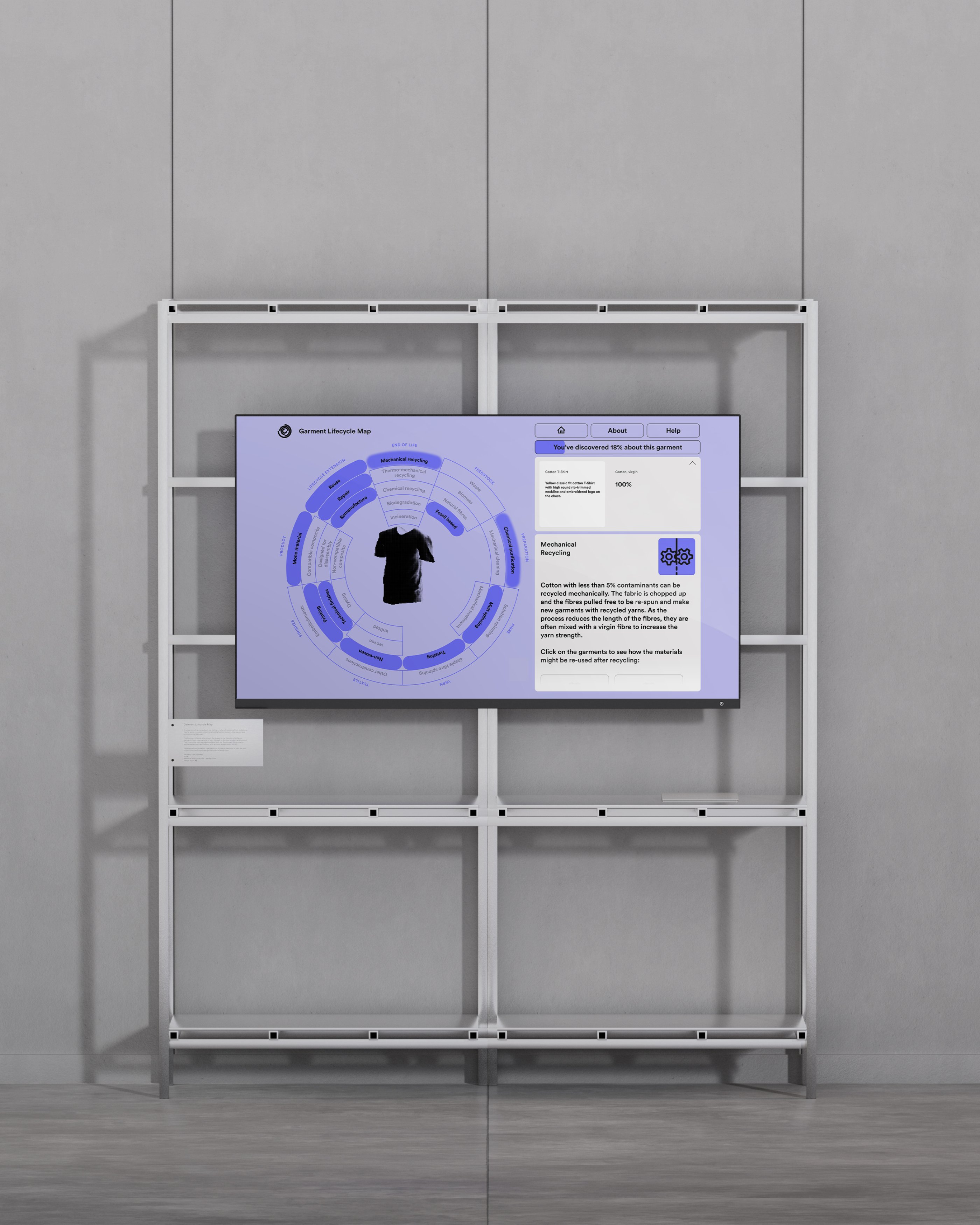 Whether it’s a plain white tee or a sequin party dress, the Garment Lifecycle Map guides visitors through each step of an item’s life. It allows them to pinpoint how decisions made at the start of production impact the garment’s environmental footprint throughout its entire lifecycle.